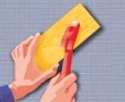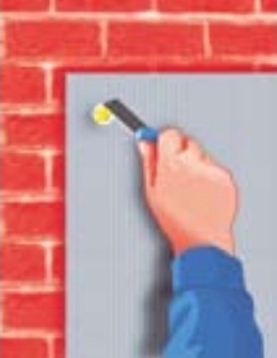 Нанесите клей с помощью штукатурного шпателя на панель; клей наносится по периметру панели с отступлением от краёв на 2-3 см в форме валика шириной 4-6 см и в центральной части панели в форме куличей (для наружных стен площадь приклеенной части должна составлять не менее 40 % поверхности панели). Места сквозной разметки должны быть обязательно покрыты клеем.
